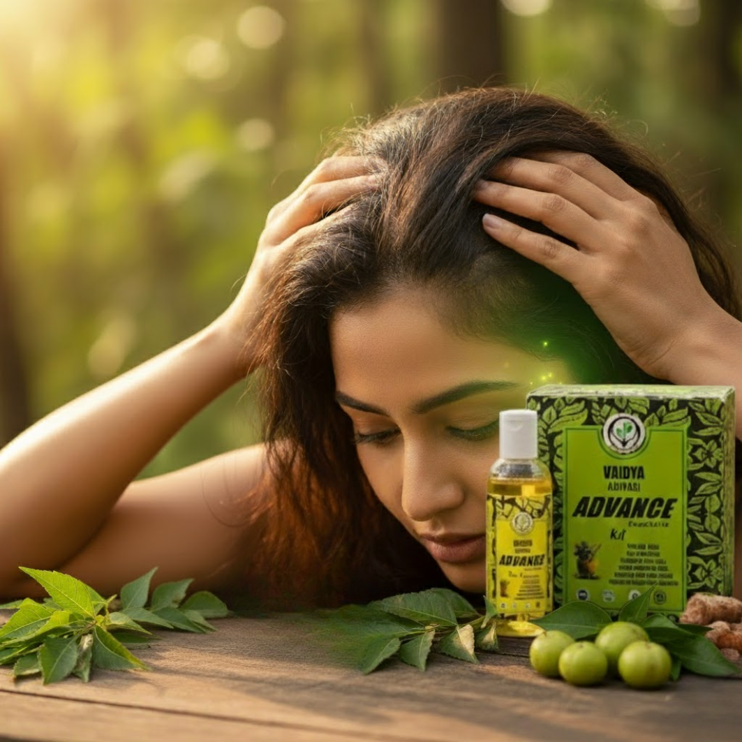 Vaidya Adivasi Advance Hair Oil (बाल झड़ना रोकने की दवा) – Ayurvedic Oil for Hair Growth & Strong Roots.